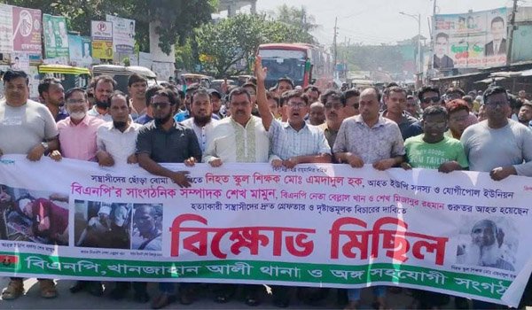 তিনি গতকাল সোমবার বেলা সাড়ে ১১টায় খানজাহান আলী থানা বিএনপি ও অঙ্গ সহযোগি সংগঠনের উদ্যোগে মাদ্রাসা শিক্ষক মোঃ ইমদাদুল হক নিহত এবং যোগিপোল ইউনিয়ন বিএনপি সাংগঠনিক সম্পাদক ইউপি সদস্য মোঃ মামুন শেখসহ শেখ মিজানুর রহমান ও বিল্লাল খান আহতের ঘটনায় জড়িত সন্ত্রাসীদের দ্রুত গ্রেফতারপূর্বক দৃষ্টান্তমূলক শান্তির দাবিতে বিক্ষোভ মিছিল পূর্ববর্তী মানববন্ধনে এ কথা বলেন।